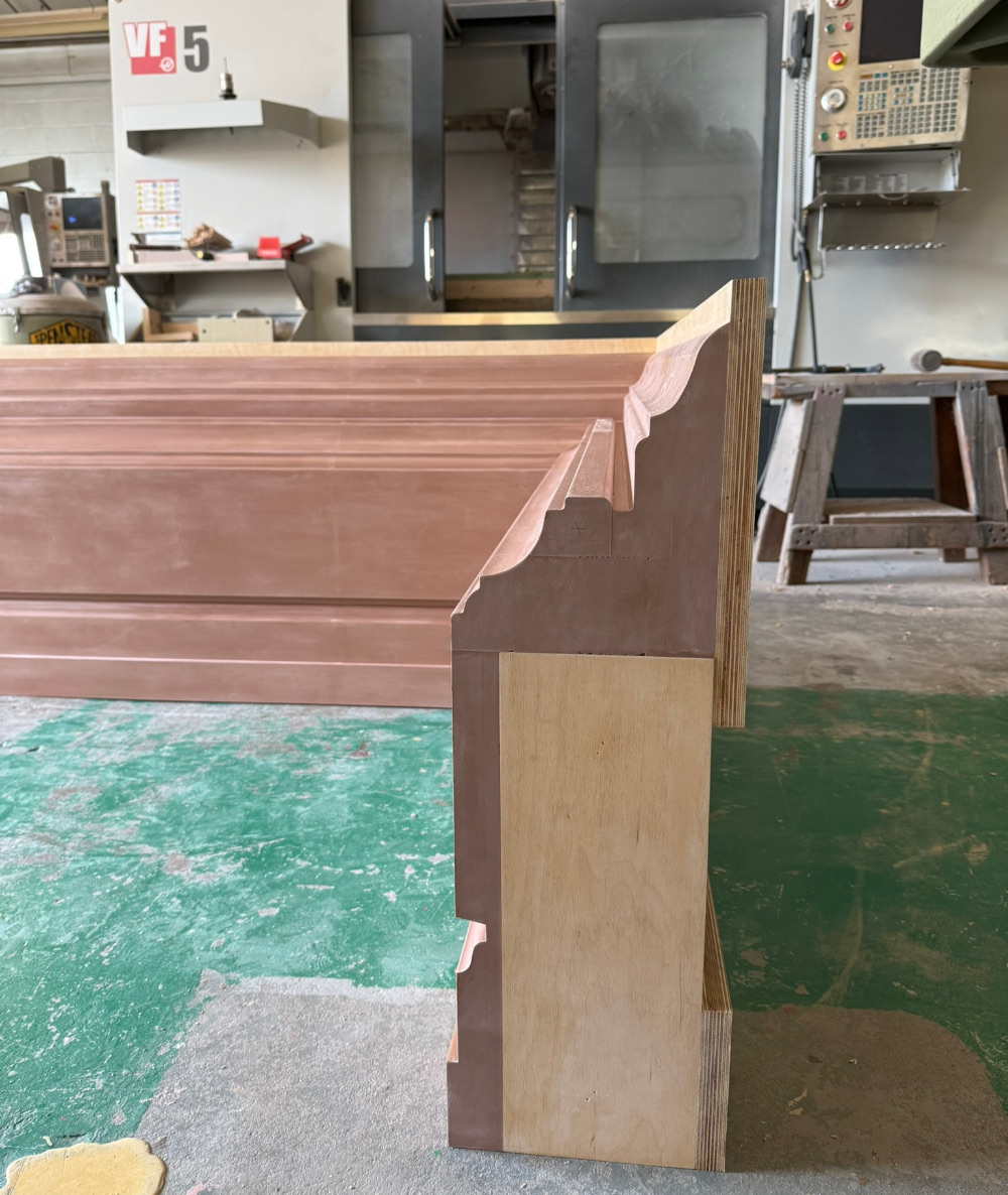 8 metre long x 1.5 metre deep cornice section cnc machined to fit into existing shuttering, to within a tolerance of +or- 2mm.